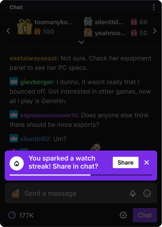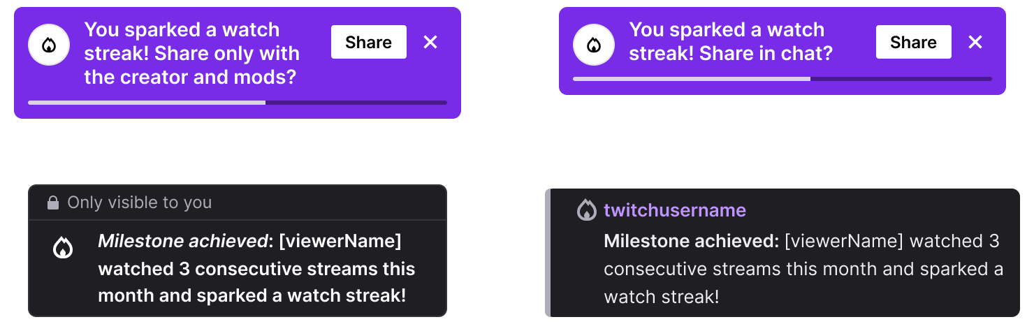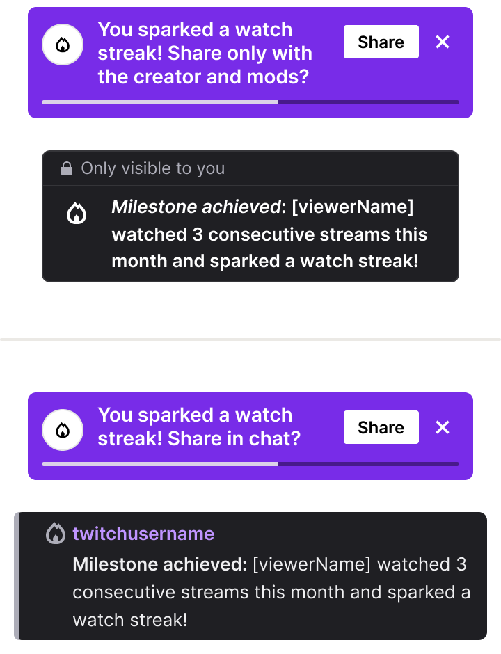 Language determines whether users perceive acknowledgment as personal validation or public performance. I developed a voice that validated silence as a legitimate form of participation rather than a problem to solve. Milestone messaging prioritized the relationship between viewer and creator over community-wide broadcasting. This strategy acknowledged consistent support without pressuring users to alter their participation style. It respected that lurkers are not inactive users awaiting activation but consistent contributors through presence. The copy reflected their existing identity rather than attempting to force a conversion into active chatters.